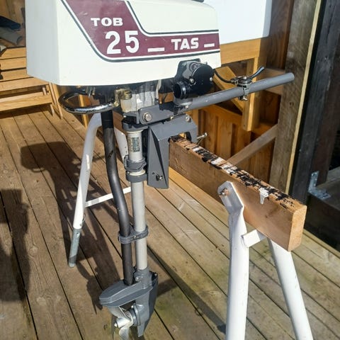 Let og praktisk transportvogn til påhængsmotor. Nem at justere i højden. Den kan bære motorer op til ca. 15 hk, og kan pakkes sammen, så den fylder minimalt når den ikke er i brug.