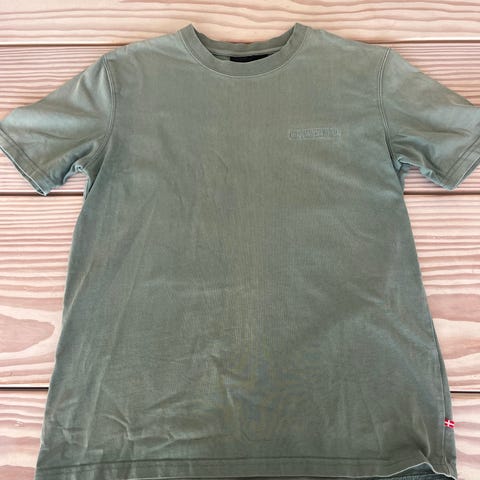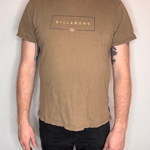 Se sidste billede, hvor den størrelses sammenlignes med en tilsvarende billabong t-shirt i str XL, for størrelses reference, grundet det manglende mærke i nakken.