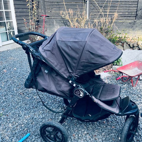 Baby Jogger klapvogn med tre hjul i grå farve. Vognen har justerbart ryglæn, stor kaleche og fempunktssele. Forhjulet er drejeligt og kan låses for mere stabil kørsel. Der er opbevaringskurv under sædet samt håndtag med rem.