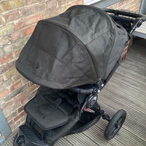 Der medfølgende babyjogger regnslag, som dækker hele fronten af vognen, en babyjogger styrtaske samt ekstra hjul.