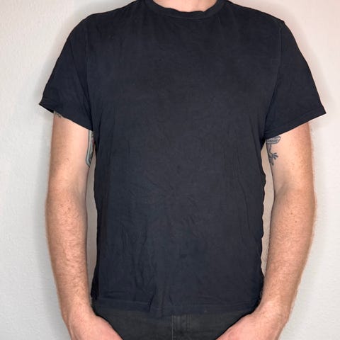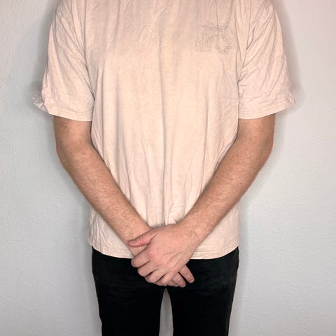 Printet holdte ikke så godt i vask, og er på denne næsten forsvundet foran. Bagpå ligner det bare det er meningen af den skal være afskallet.