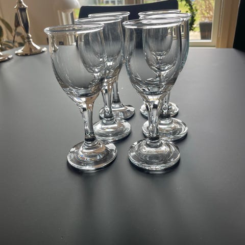 11 snapseglas samt 13 portvinsglas fra Holmegaard- serien “ Ranke”.