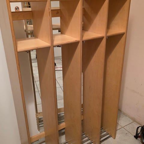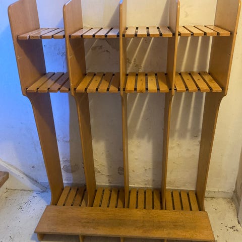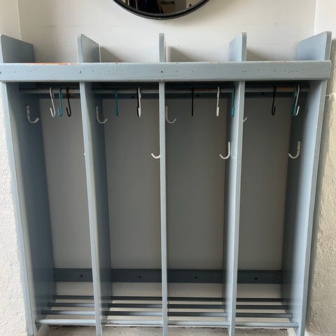 Ældre og meget velholdt børnehavegarderobe fra Hukit med plads til 6 personer.