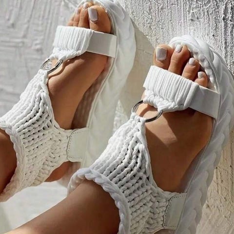 Plateausandaler med åben tå og kilehæl, der giver ekstra højde.