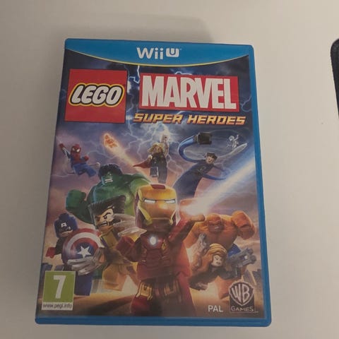 Lego Marvel Super Heroes spil til Nintendo Wii U. Fysisk spil på disk i standard Wii U-cover. Spillet er PEGI 7-mærket og PAL-version, egnet til Wii U-konsoller, der understøtter PAL-format. Action- og eventyrspil baseret på Marvel-superhelte i Lego-universet.