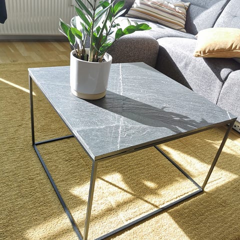 Sofabordssæt fra Ilva med bordplade i hvid højtrykslaminat, og stel i massiv Sortbejset ask.