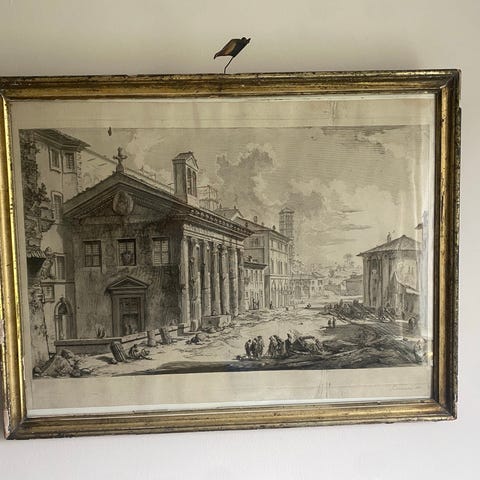 Nederst i venstre hjørne og på bagsiden står der “Aften udenfor den Kgl. Teater”