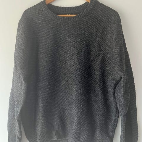 Flot grå strikket trøje fra H&M i str L. Den er brugt 5 gange. Lavet af viscose og polyamide. Længde 66 cm, brystmål 2x54 cm. Sælges for 100 kr. Se også mine andre annoncer!!!