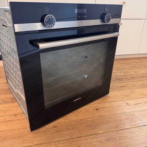 Siemens kompaktovn. Indbygningsovn i kompakt størrelse med front i glas og metal. Ovnrum med bageplader samt indvendig belysning. Elektronisk betjening via display på fronten. Ovn virker som den skal. Kan af prøves.