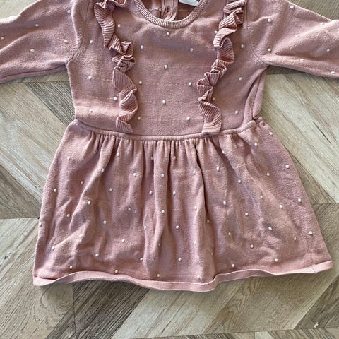 H&M kjoler til pige i str. 80. Sættet består af to kjoler i bomuld. Den ene kjole er rød med små prikker og uden ærmer. Den anden kjole er ærmeløs i en lys grøn nu med knapper foran.