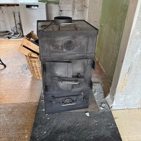 Brændeovn gives væk