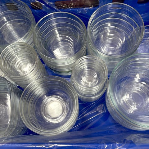 Sæt med glas fyrfadsstager i gennemsigtigt glas med sort indsats. Stagerne er til lampe olie , der er 10 stk m lampeolie