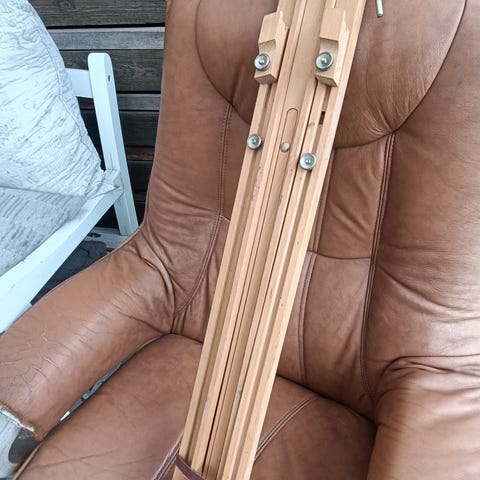 Panduro Hobby staffeli i træ. Fritstående staffeli med justerbar højde til lærred eller plade. Fremstillet i lyst træ med sort plastskrue til fastgørelse af lærredet. Egnet til brug i atelier, hobbyrum eller midlertidige udstillinger. Kan klappes sammen for lettere opbevaring og transport.