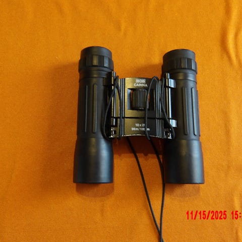 Tronic 10x25 kikkert i sort. Kikkerten har 10x forstørrelse og 25 mm objektivdiameter (10 m/1000 m). Kompakt folde design med central fokuseringsskrue og gummieret overflade for bedre greb. Leveres med taske og pudseklud som vist på billederne. Velegnet til f.eks. natur- og fritidsbrug, hvor en let og transportabel kikkert er praktisk.og 1stk. Makron 10x25 med samme værdier som Tronic
