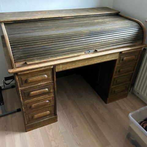 post-sorteringsbord, Skrivebord med reol og mange rum i træ