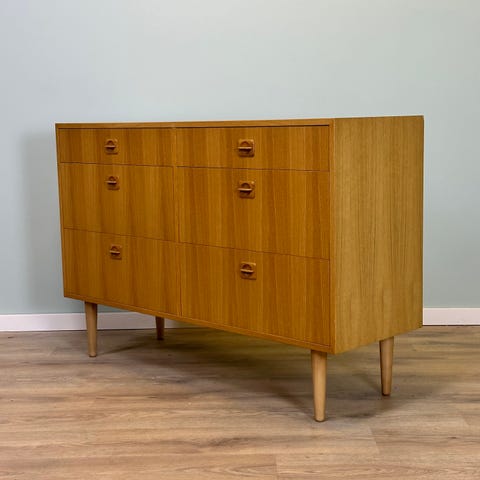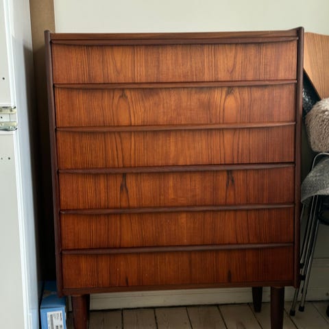 Nr. 2054: Kommode med 5 skuffer. skab / skænk i teaktræ / teak.