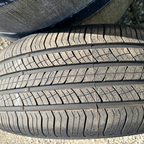 Dækkene er originale fra bilen og har kun kørt ca. 4.000 km, så de fremstår næsten som nye med meget dybt mønster (se billeder).