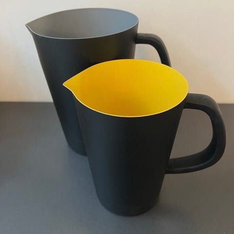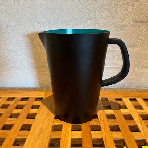 Normann Copenhagen kande i hård plast med sort yderside og mintgrøn inderside. Kanden har integreret hank og hældetud, egnet til servering af kolde og varme drikke ved borddækning i køkken eller spisestue.