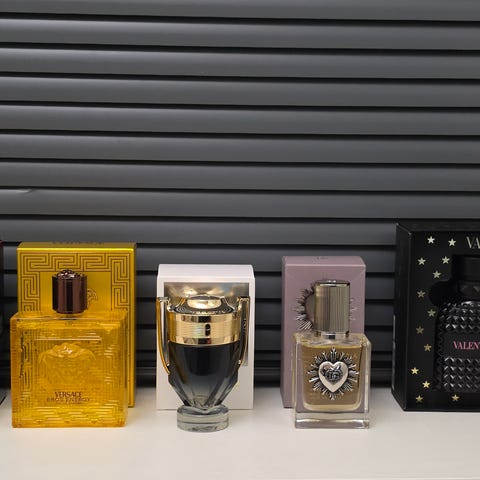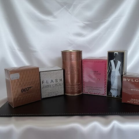 Valentino, Versace, Prada, Dolce & Gabbana og Rabanne parfume sæt.