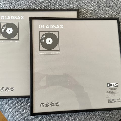 IKEA kvadratisk ramme til LP'er. Rammen har en enkel, neutral udformning med gennemsigtig front og bagplade i trælook. 6 stk.