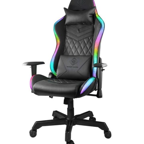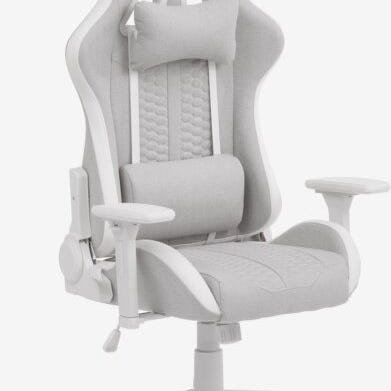 Gamingstol i blødt Alcantara-stof med ergonomiske egenskaber, der minder om en racerstol. Med høj ryg og ekstra puder til hoved- og lændestøtte undgår du ryg- og nakkeproblemer efter mange timers brug. Stolen er naturligvis højdejusterbar, ligesom armlænene også kan justeres. Puderne til ryg og nakke kan ligeledes tilpasses for optimal komfort.