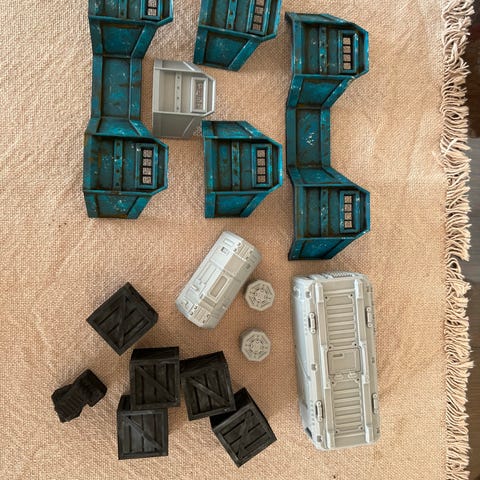 Modulært sci-fi terræn sæt til bordrollespil, det er primet og klar til brug, så man kan bygge et nyt spændende bord til hver kamp