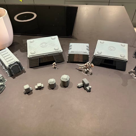 3D printet Terrain som kan bruges til Star Wars legion, Warhammer 40K, infinity eller lignende. (Modellen er blot for størrelse)