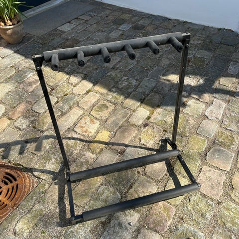 Letvægt gulvstativ beklædt med beskyttelses materiale. Kan sammenklappes til transport. Plads til 9 forskellige instrumenter.