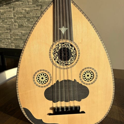 Afrikansk strengeinstrument af ukendt mærke. Instrumentet har en rund resonanskasse af kalabas med dekoreret overside og et langt træhals. Der er to træstemmeskruer og strenge monteret hen over resonanskassen. Velegnet som musikinstrument for den interesserede eller som dekorativt etnisk indslag i indretningen.