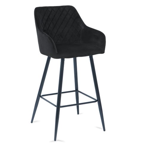 Elegant og komfortabel barstol i velour Årsag til outlet: Varen er pakket ned i en anden vares kasse. Carlo barstolen kombinerer stil og komfort med sit elegante design og bløde sorte velourbetræk. Den quiltede ryg tilføjer et eksklusivt touch, mens armlænene giver optimal støtte. Med en sædehøjde på 65 cm er den perfekt til køkkenøer og bardiske. De sorte metalben sikrer stabilitet og et moderne udtryk – en perfekt tilføjelse til ethvert hjem.