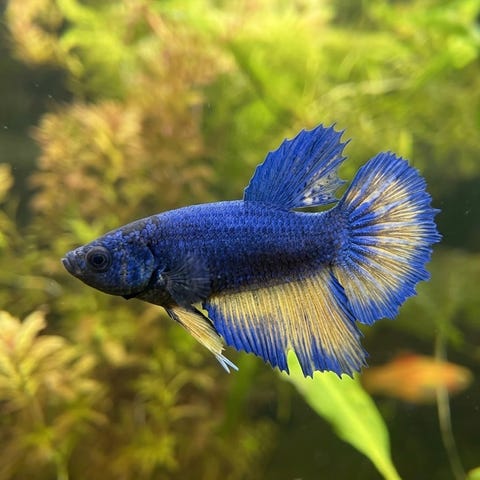 Dens finner er velplejede, og den svømmer livligt rundt.