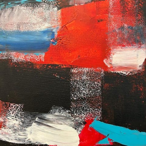 En livlig virvlende fantasi og bevægelse udfolder sig over lærredet og trækker tilskueren ind i et rige, hvor fantasi og virkelighed smelter sammen uden besvær. To ryttere optræder gennem en legende harmoni af rødt, gult og blåt, der gentager den livlige ånd i folkekunsten. Fedtede mønstre og rytmiske striber skaber en stærk fornemmelse af bevægelse, som forsigtigt river øjet ind i en scene fuld af charme og vitalitet.