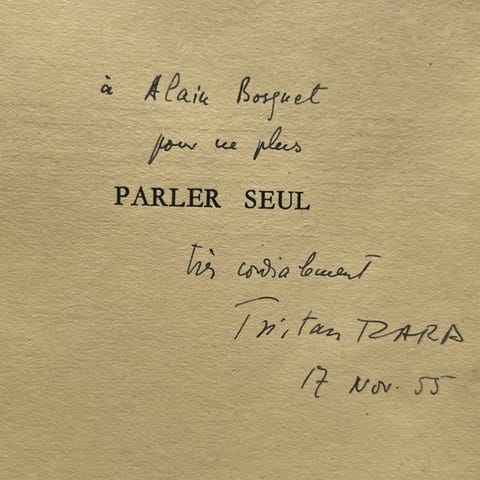 René Char, autografisk hilsen til Albert Béguin på Les Matinaux (1950), « trofast og af hele sit hjerte ».