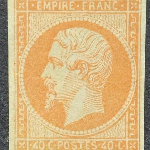 Oprindelse Frankrig; Napoléon III ikke tandet, 5 c grøn, underskrevet Calves; mint med hængsel; 1854; Yvert 12; tre pæne margener, øverste kant.Ubeskåret, TTB, katalogværdi €1500 (Yvert 2025). Klik på den blå "gå til varen" knap, for at købe eller byde på denne vare. Den samlede pris vil blive vist inden du afgiver dit bud.