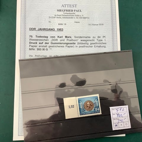 DDR mint, aldrig-klæbende frimærkesamling, komplet fra 1949 til 1960 i Lindner-album med alle gode udgaver og blokke, inklusive Debra-Block, Chinesen, alle fire Marx-Blocks og ekstra såsom Zusammendrucke. Klik på den blå "gå til varen" knap, for at købe eller byde på denne vare. Den samlede pris vil blive vist inden du afgiver dit bud.