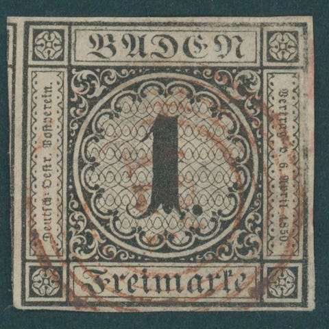 Baden 1851 - perfekt stemplet, fejlfrit par 1 kr. gulbrun af første udgave me...