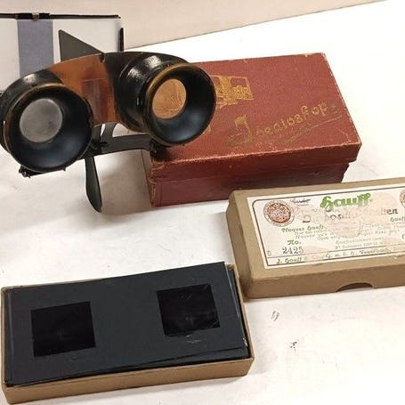 Fremstillet i sit originale etui med blå velour indvendigt, det vidner om begyndelsen på immersiv fotografi i begyndelsen af det 20. århundrede.