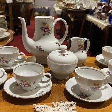 til salg står et klassisk spise-servise af porcelæn fra Kahla-manufakturen i det tidløse mønster „Løgmønster Indigo“. Servicen imponerer med sit traditionelle blå-hvide design med sarte florale ornamenter og står for høj kvalitet bordkultur fremstillet i Tyskland.