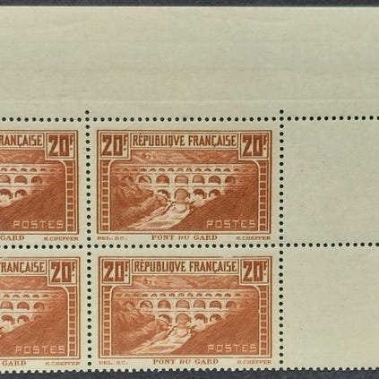 Fransk frimærke fra 1930, med titlen rare dentelé, perforé pont du Gard, oblitéreret stand (Yvert nr. 262 B). Klik på den blå "gå til varen" knap, for at købe eller byde på denne vare. Den samlede pris vil blive vist inden du afgiver dit bud.