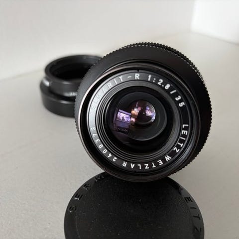 Inklusiv: UV-filter E55 og bagdæksel Leica R.