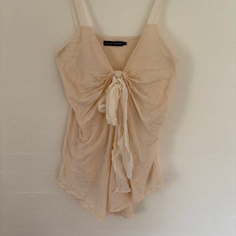 Cremefarvet bluse fra Lauren Ralph Lauren, str. M. Model Rosebell med stor flæse i chiffon. Ny og ubrugt. Sælges for 250 kr. pp