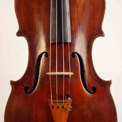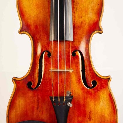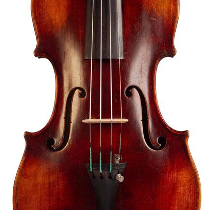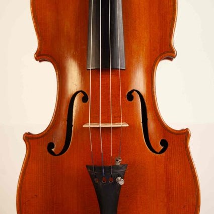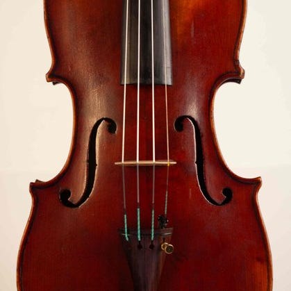 Et fuldstor violin 4/4 af Soffritti Ettore, mærket, dateret til 1923, i meget god stand og testet og spilbar, med seje ahorn-bagside og gran-top, gylden-ambers farvelægning, for nylig udstyret med nye ebenholt-piber og nye strenge, og en Aubert-Bridge, med to professionelt reparerede revner nær A-stemmehullet. Klik på den blå "gå til varen" knap, for at købe eller byde på denne vare. Den samlede pris vil blive vist inden du afgiver dit bud.