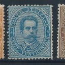Italien Kongerige - Umberto I overstrykte frimærker, komplet serie nr. 56/58....