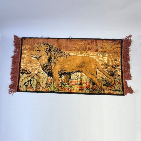 Positivt punkt: den er ikke blevet beskåret og bevarer fuldt ud sine oprindelige dimensioner, med sin æra-bordure komplet, et særligt sjældent detalje fordi mange gamle vævetæpper har fået kanterne skåret eller ændret gennem århundrederne.