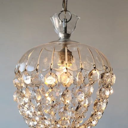 Hængende prismater: Suspendede, facetterede krystal-dråber (ofte i former som «pære» eller «isdråber») designet til at fange og refraktere lyset.