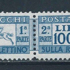 1947 miniarkene fra Republikken San Marino, fra hundreåret for det første amerikanske frimærke, af Luftpost 100 lire, IKKE FOLDET, i perfekt bevaret tilstand, den katalogværdi Sassone 2025 på 4800 euro.