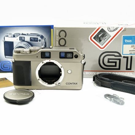 Til salg er en smuk Contax G1 35mm AF rangefinder-krop. Kendt for sin robuste titanium-konstruktion og præcis betjening.