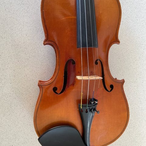 AMATI-model 4/4 violin af tysk oprindelse fra 1930’erne, mærke ukendt, i god fysisk stand og testet og funktionsdygtig, vægt 420 g, uden ekstraudstyr; samlet længde 58,7 cm, strengeafstand 32,6 cm, krop længde 35,8 cm, talje 11,5 cm, øvre bredde 16,6 cm, nedre bredde 20,7 cm. Klik på den blå "gå til varen" knap, for at købe eller byde på denne vare. Den samlede pris vil blive vist inden du afgiver dit bud.