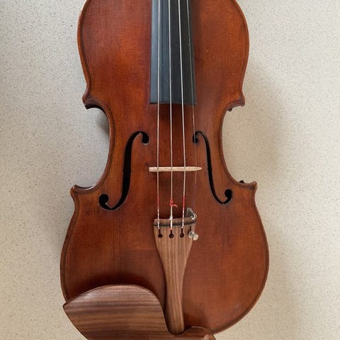 Værelens violinen er et AMATI-model og har en flammet bagside af ét stykke. Lyden er varm og fyldig.