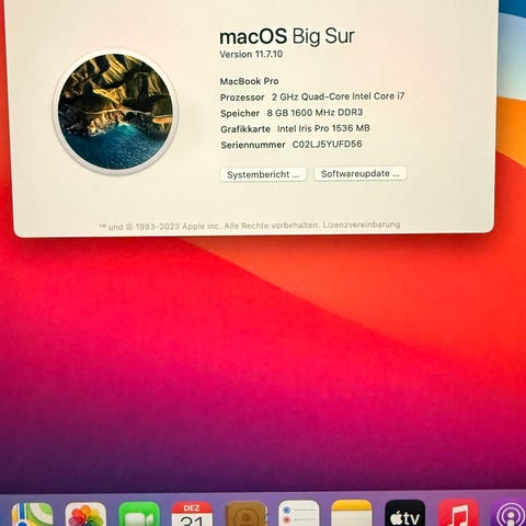 MacBook'en er i brugt kosmetisk stand. Se venligst billederne for eventuelle brugstegn og den generelle tilstand af MacBook'en, så du kan danne dig din egen mening.